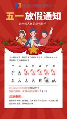 根據(jù)國家法定節(jié)假日安排及公司實際情況,現(xiàn)將2023年五一勞動節(jié)放假事宜通知如下:一、放假時間本次放假時間為2023年4月29日(星期六)至5月3日(星期三)放假調(diào)休,共5天。4月23日(星期日)、5月6日(星期六)上班。請各位員工提前做好工作安排,確保放假期間各項工作能夠順利交接。
